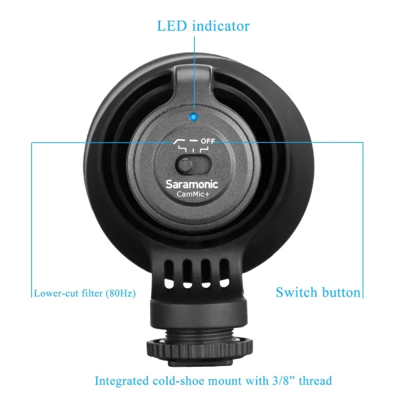 Saramonic CamMic - это активный конденсаторный микрофон, обеспечивающий превосходное качество звука при видеосъемке для режиссеров и звукорежиссеров.
