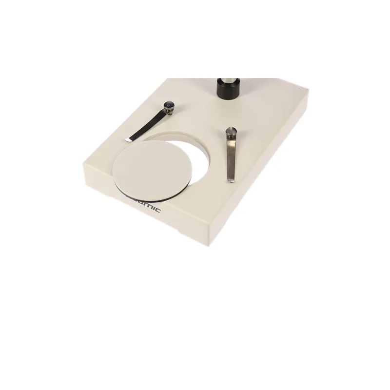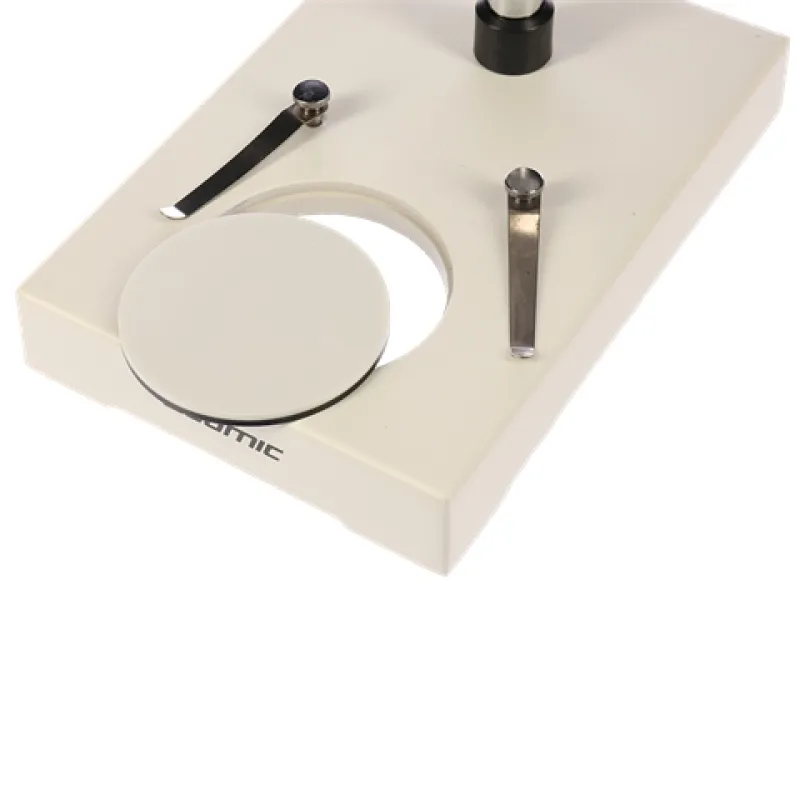 The BYO-ST2 has a sturdy metal body with an integrated table of 110 by 75 mm. It is equipped with two solid clamps to keep a specimen in position, so it does not shift during observation. In the table there is a contrast plate of Ø60mm. This contrast plate is white on one side and black on the other side.