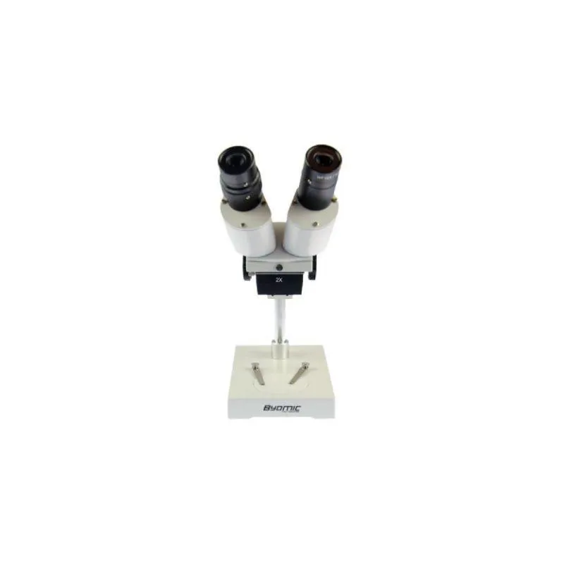 The Byomic BYO-ST2 Stereo Microscope is suitable for beginner hobbyists and use in schools. The BYO-ST2 is equipped with a sturdy metal casing and a standard 20x magnification. The 20x magnification is achieved through the 2 10x wide angle eyepieces and a 2x objective lens.