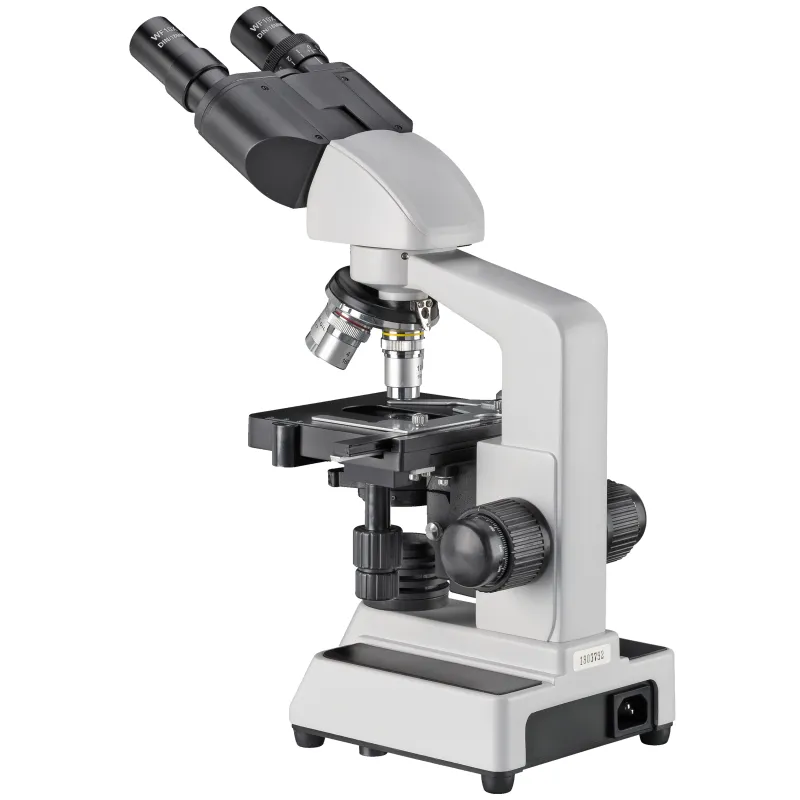 The Researcher Bino is a professional microscope with transmitted illumination , equipped with brilliant optics, a robust metal body and precise workmanship. It is perfect for use in school, studies, and occupation. The comfortable binocular head provides an exceptional bright image and can be individually adjusted according to the observer's needs. The objective turret, is fitted with 4 DIN objectives and offers a large variety of magnification possibilities. Focussing is done through the use of the coarse and fine adjustment wheels. The illuminator and the double-lens condensor with iris diaphragm guarantee the perfect illumination of the observed object.