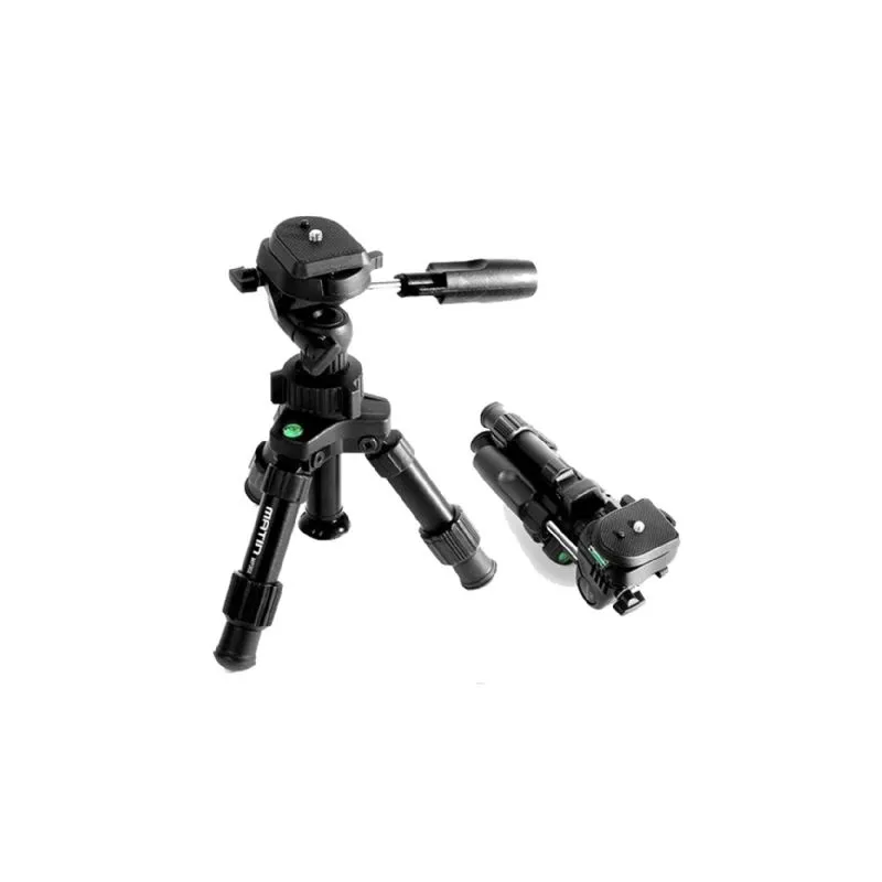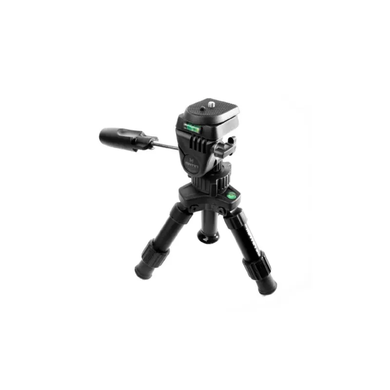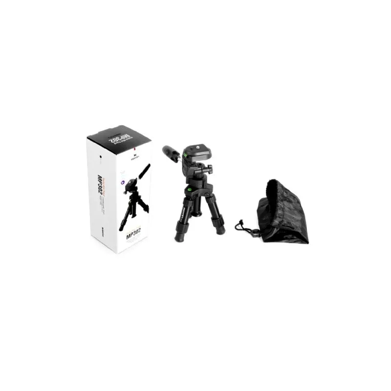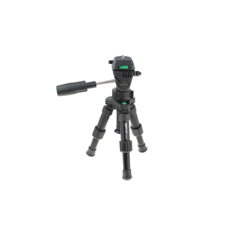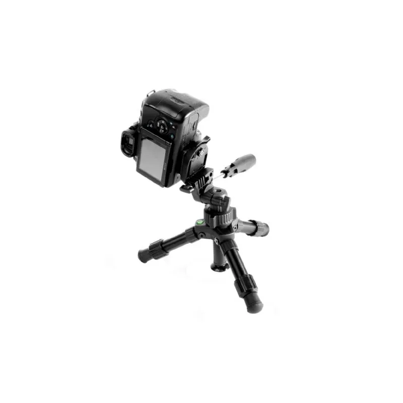 The Matin Table Tripod with Panoramic Head MP-302 is a compact and steady tripod. The tripod is adjustable in height up to 30 cm. The table tripod is equipped with a panoramic head, with which you can move your camera freely. From basic position the panoramic head can bend 90 degrees forwards and 90 degrees backwards. Furthermore it can turn 360 degrees around its axis. On top of the panoramic head, a 1/4 thread is mounted.