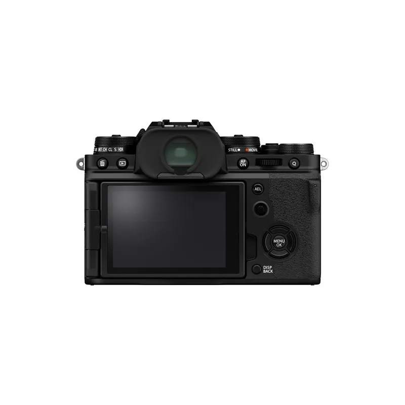 Addressing the needs of multimedia image-makers, the black FUJIFILM X-T4 is a versatile mirrorless camera that blends advanced stills and video capabilities along with enhanced workflow and assistive functionality. Utilizing a proven and well-regarded APS-C-format 26.1MP X-Trans CMOS 4 sensor, the X-T4 is capable of high-resolution recording along with support for DCI/UHD 4K video at 60 fps, Full HD recording up to 240 fps, sensitivity from ISO 160-12800, and continuous shooting up to 15 fps with the mechanical shutter. The BSI design of the sensor affords reduced noise and greater overall clarity and is paired with the X-Processor 4 to achieve fast performance and improved responsiveness. The sensor's design also enables a hybrid autofocus system that combines 425 phase-detection points with a contrast-detection system for quick and accurate AF performance. Additionally, complementing all aspects of image production, the X-T4 also incorporates a 6.5 stop-effective sensor-shift image stabilization system to reduce the appearance of camera shake with almost any mounted lens.