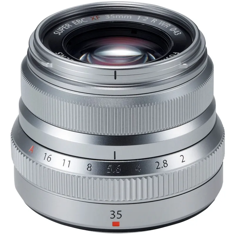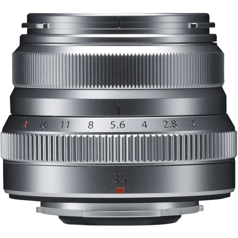 Offering a normal perspective in a compact package, the silver XF 35mm f/2 R WR Lens from Fujifilm is optimized for use on X-series cameras with APS-C format sensors, producing a 35mm equivalent focal length of 53mm. Along with this, it has a fast f/2 maximum aperture, useful for creating images with a shallow depth-of-field and working in low-light conditions. Ensuring optimal image quality is a 9 element in 6 group design that incorporates two ED and two aspherical elements that work to minimize aberrations and distortion for crisp, clean imagery. Also, the lens has the Nano-GI coating which dramatically limits the effects of ghosting and flare.