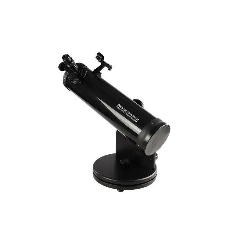 The Byomic Dobson Telescope SkyDiver 102/640 is a powerful and simple telescope. As soon as the telescope is placed on a flat surface, it is ready for use. Due to the Dobsonian mounting, the telescope can easily move left and right as well as up and down. When the correct position is reached, it can be locked in place using the convenient locking buttons.