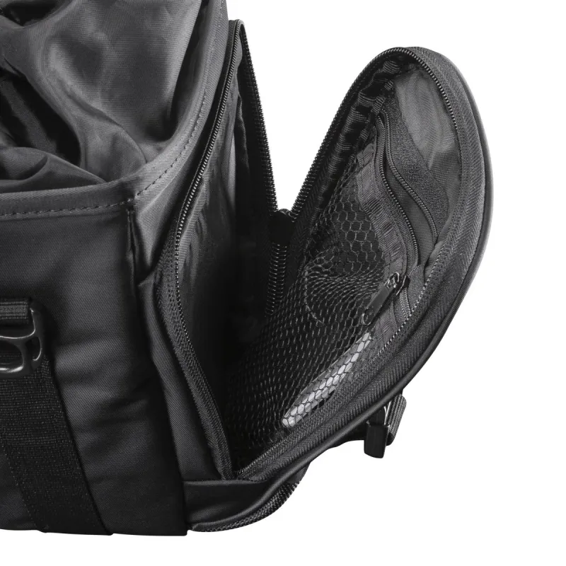 A mesh pocket in the lid of the bag and a zipped compartment on the front offer additional storage space for camera accessories. In them, you can store small items such as batteries, filters or storage cards.