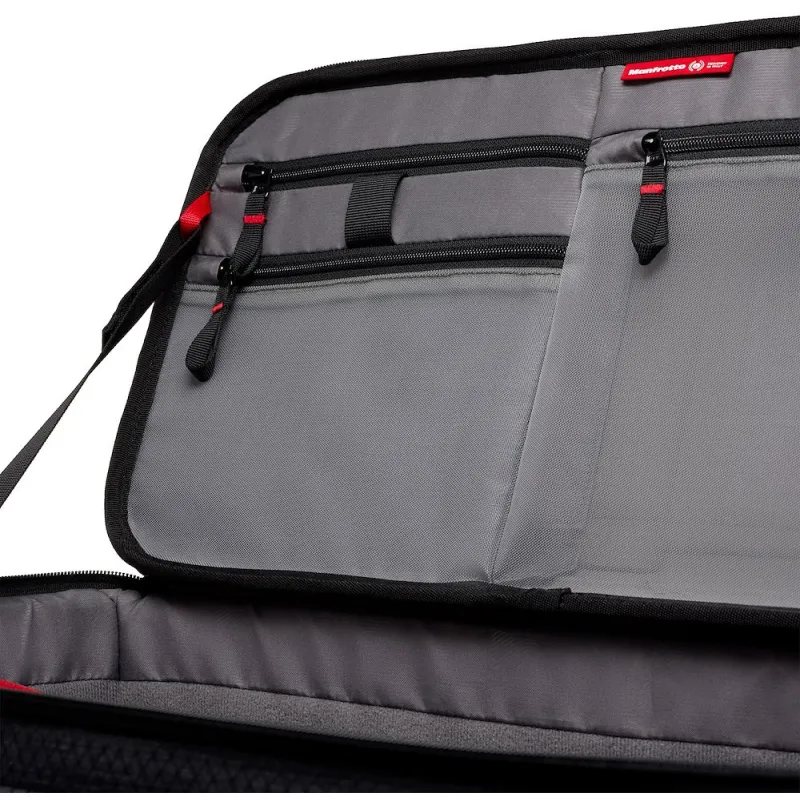 The top lid features a new hybrid approach to protection. Soft & hard materials have been combined to create a new, unique feature: with the EVA thermoformed protective lid, professionals will have peace of mind when transporting their gear no matter what the conditions. Thanks to this hard platform, a video support kit can be fully loaded and fastened to the surface. The lid also offers 3 transparent pockets and a loop to carry a pen or another slim accessory.