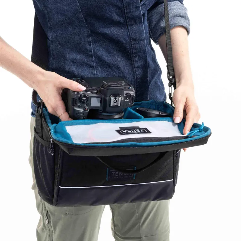 Черная сумка Tenba V2 12 Shoulder Bag - удобный и прочный выбор для переноски комплекта фотоаппаратуры и не только. В сумке достаточно места для беззеркальной или DSLR-камеры с тремя-четырьмя объективами. Изготовленная из водонепроницаемой ткани с усиленной строчкой и прочными молниями YKK, сумка сохранит ваше оборудование в целости и сохранности в различных условиях. Крышка открывается в сторону от тела, чтобы вы могли быстро получить доступ к своему снаряжению. В боковых карманах из эластичной сетки можно разместить бутылку с водой, штатив или зонтик. Внутренний карман на молнии идеально подходит для мелких аксессуаров, таких как карты памяти или запасные батареи. Удобно носить сумку с помощью съемного плечевого ремня.