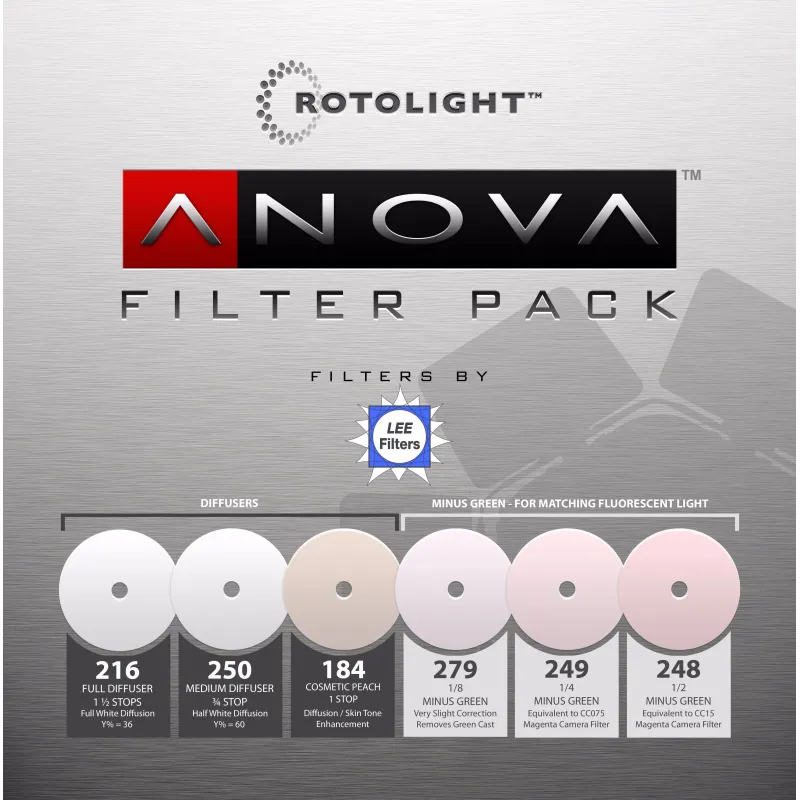 Replacement 4 filter pack for Anova V2,PRO & PRO 2 (inc 2 x Diffusion, 1 x Cosmetic Peach and 1 Minus Green).