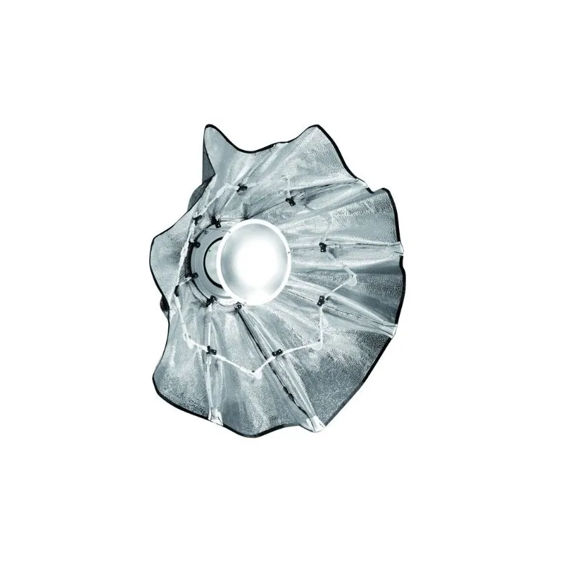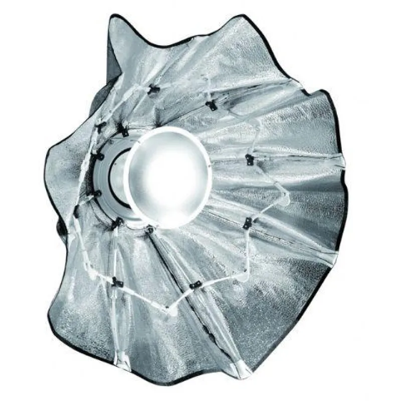 The Linkstar QSSR-85X/S Foldable Beauty Dish is designed to spread the light further while maintaining a regular contrast. The QSSR-85X/S produces a soft yet somewhat dramatic lighting effect that is commonly used in portrait and fashion photography to highlight skin tones and faces. Included in the delivery is a diffuse cloth, which can be used to soften the light by diffusing the light output. The QSSR-85X/S has a diameter of 85 cm and is foldable, making it suitable to take on location.