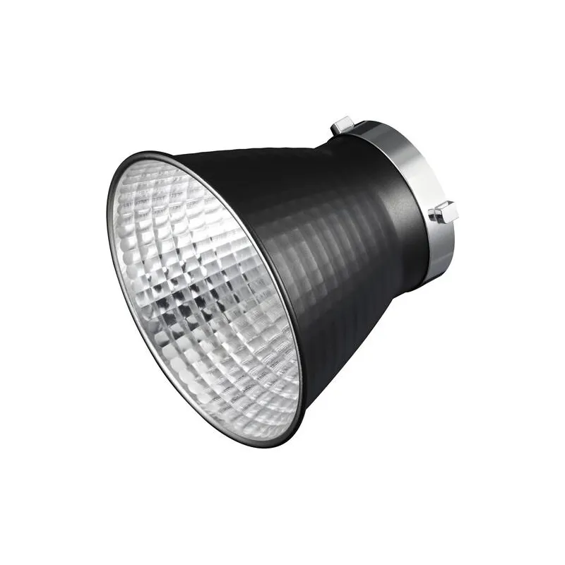 The 7" RFT-19 Reflector from Godox is a modifier with a 30° beam spread and a faceted, polished silver interior to maximize output. The reflector has a Bowens mount that not only fits Godox LED heads (see compatibility) but also products from the many manufacturers that use this popular mount.