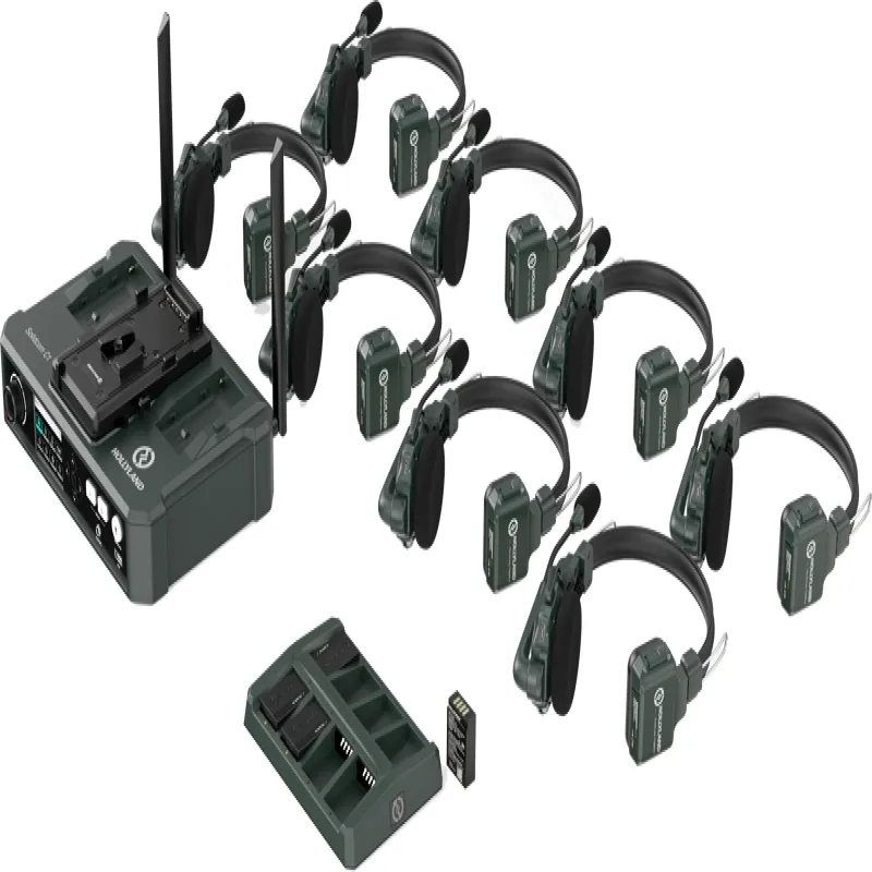 The Solidcom C1 full-duplex wireless intercom headset system, adopting the advanced DECT 6.0 technology, is Hollyland's first true wireless and self-contained headset communication solution with exceptional sound clarity. The system operates in the 1.9GHz band, providing a reliable transmission range up to 1000ft (350m) radius (LOS).