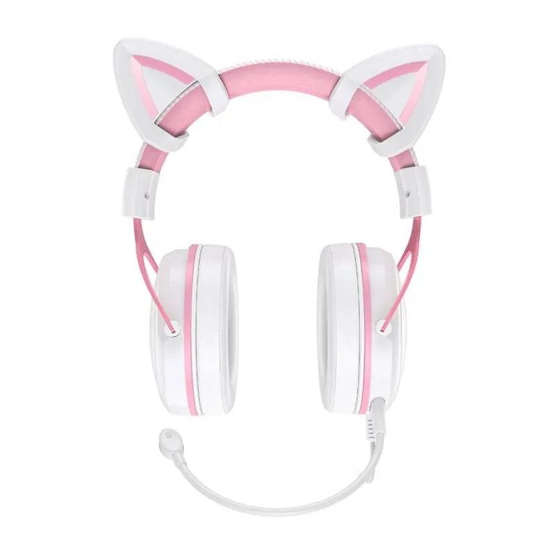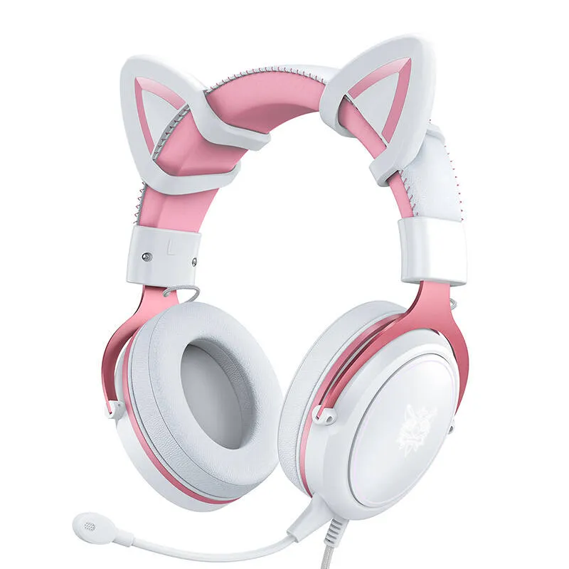 Откройте дл себ игровые наушники ONIKUMA X10, которые имеют стильный бело-розовый дизайн с милыми кошачьими ушками. Эти наушники сочетают в себе комфорт и высококачественный звук, что делает их идеальными дл геймеров и любителей музыки.