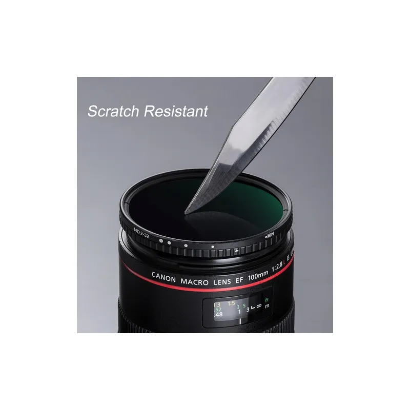 Elevate your photography with the K&F Concept Nano-X ND2-ND32 Variable ND Filter. This 37mm filter allows an adjustable light reduction of 1-5 stops for creative control. Crafted from Japanese optical glass with a green multicoating, it maintains true colors. Plus, its waterproof and scratch-resistant coating ensures long-lasting performance in various conditions. Ideal for capturing dynamic shots of waterfalls, landscapes, and more.