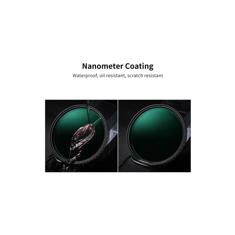 The KF Concept ND8-ND2000 Nano-X Variable ND Filter is a versatile 58mm filter offering 3 to 11-stop light reduction. Ideal for photographers and videographers, its made from Japanese AGC optical glass, features a 24-layer multicoating, and is encased in a slim 7.5mm aircraft-grade aluminum alloy ring. This filter allows for creative control over shutter speed and aperture, making it perfect for capturing motion blur and managing depth of field in various lighting conditions. Its multi-resistant, waterproof coating ensures top-notch image quality and easy maintenance.