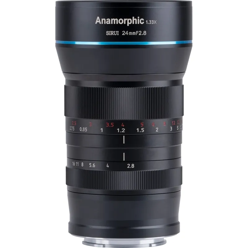 This 24mm f/2.8 Anamorphic 1.33x Lens from Sirui, in a Sony E mount, brings a wide-angle feel to your anamorphic imagery, in addition to the extra width provided by the anamorphic process. Designed for MFT/APS-C cameras with a Sony E mount, the lens increases the horizontal FOV by 33% compared with traditional 24mm APS-C lenses. After de-squeezing, the captured image is displayed in a 2.4:1 format in a 16:9 setting. Lightweight and portable, the f/2.8 lens is designed with an aluminum housing and features optics with multilayer nano coatings.