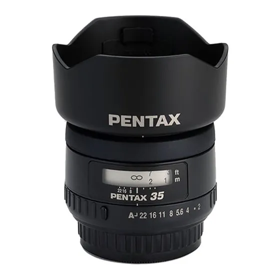 The Pentax smc P-FA 35mm F2.0 AL is a semiwideangle lens with much of the normal lens perspective but a larger viewing angle. This lens has internal floating elements for optimal results throughout the focus range. Bright, light and sharp.