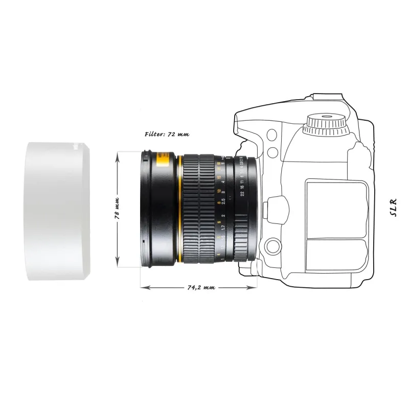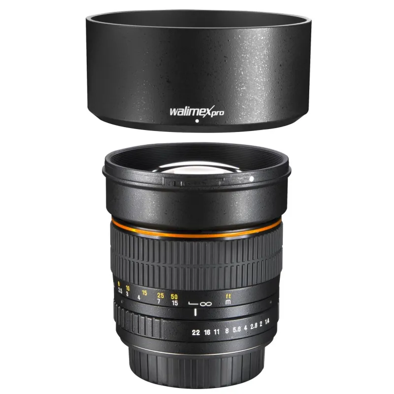 Thes walimex pro 85/1.4 IF lens is a classic portrait lens, which expands the creative range in photography. The lens has a focal length of 85mm and a lens speed of 1:1.4 and a mechanical aperture ring. It is optimized for medium and farther distances and provides a very high and sitortion-free imaging quality, which can be further enhanced by stopping down.