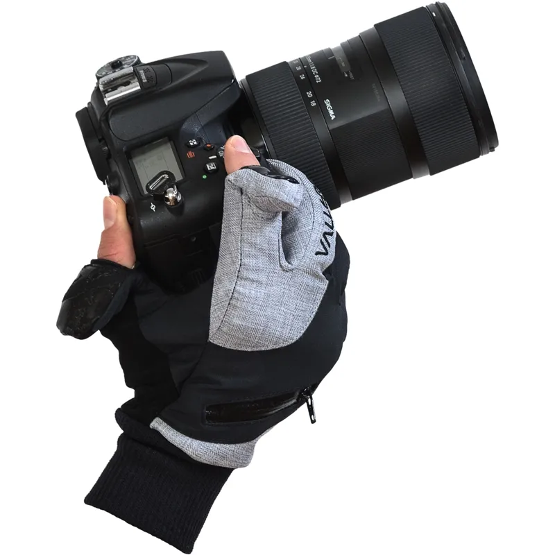 Otrādi apgriežami pirksti, vidēja slāņa Thinsulate izolācija un 100% merīnvilnas oderes pamatslānis — tas viss veido jūsu jauno iecienītāko piederumu fotografēšanas somā.