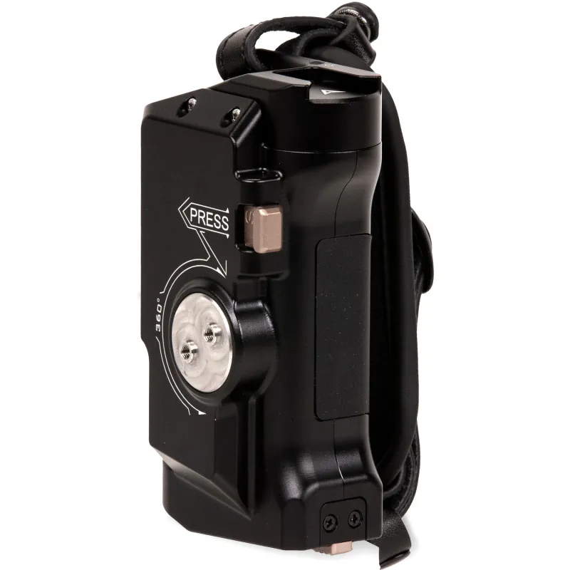 Левый продвинутый источник питания Tilta черного цвета крепится к левой стороне камерных конструкций Tiltaing с помощью дополнительного крепления на рельсах/розетках Tilta Left-Side Adapter Type IV, V или VI. Ручка принимает аккумулятор Sony F570 (продается отдельно) и имеет два выхода для питания аксессуаров от аккумулятора. Она предлагает 8V USB Type-C выход и 12 VDC порт. Кроме того, продвинутый источник питания предоставляет кнопку запуска/остановки для управления записью на совместимых камерах через дополнительное соединение R/S кабелем.