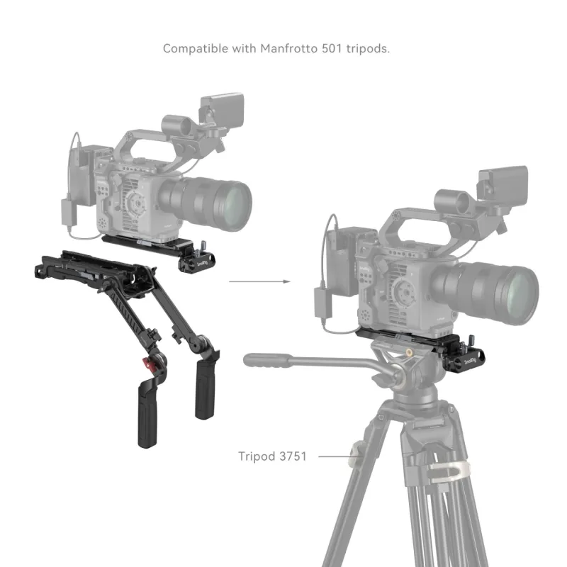 Комплект SmallRig Shoulder Rig Pro Kit предоставляет все необходимые инструменты для удобной и интуитивно понятной съемки с плеча на кинокамеры Sony, Blackmagic, Canon или Panasonic. В комплект входит плечевая площадка, совместимая со штативной пластиной VCT-14, два регулируемых удлинителя и две прорезиненные рукоятки с розетками ARRI. В собранном виде комплект совместим с 15-мм штангами LWS и быстросъемными системами для эффективного перехода от съемки с рук к съемке со штатива.