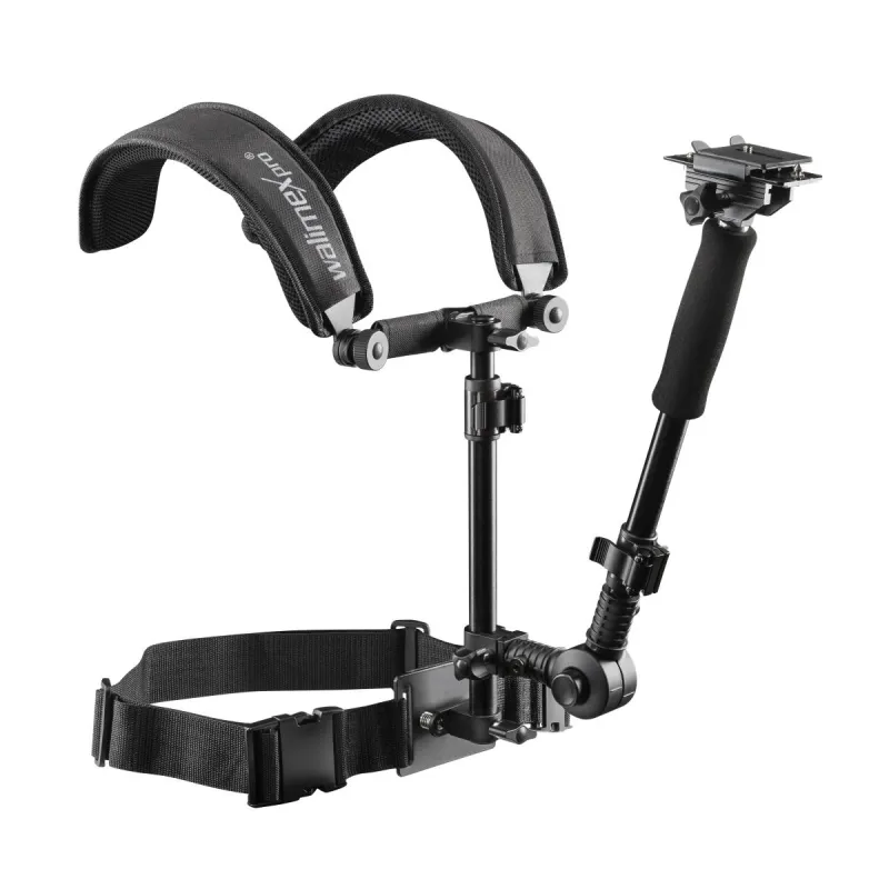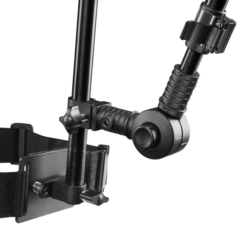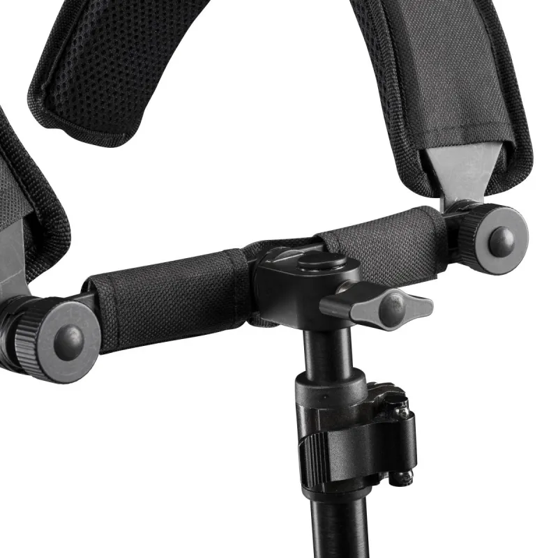 The shoulder rig from walimex pro with its (light) weight of less than 2 kg offers unexpected possibilities: The solid supports stabilize your camcorder or your camera or DSLR on your shoulders and your upper body and therefore practically have the function of a body tripod. This gives your shots more consistency and quality. Furthermore, the ergonomic shape and the design, that can be adapted to the body height, make you feel relieved and free. The possibility of working with both hands without limitation gives you even more freedom of movement. Heavy arms after a shooting and blurred results are facts of days gone by. Because the shoulder rig from walimex relieves your arms, prevents exhaustion and provides comfort.