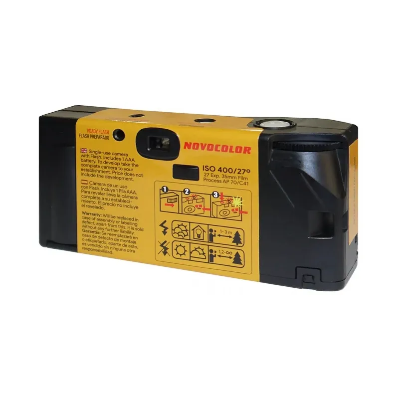 Одноразовая камера со вспышкой, в комплекте цветная пленка с ISO 400, 27 экспозициями, для использования как в помещении, так и на улице.