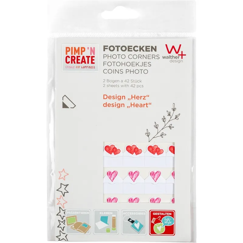 These photo corners is made of paper and are acid-free to keep your photos safe and keep the quality over time. 84 pcs corners in design of hearts.