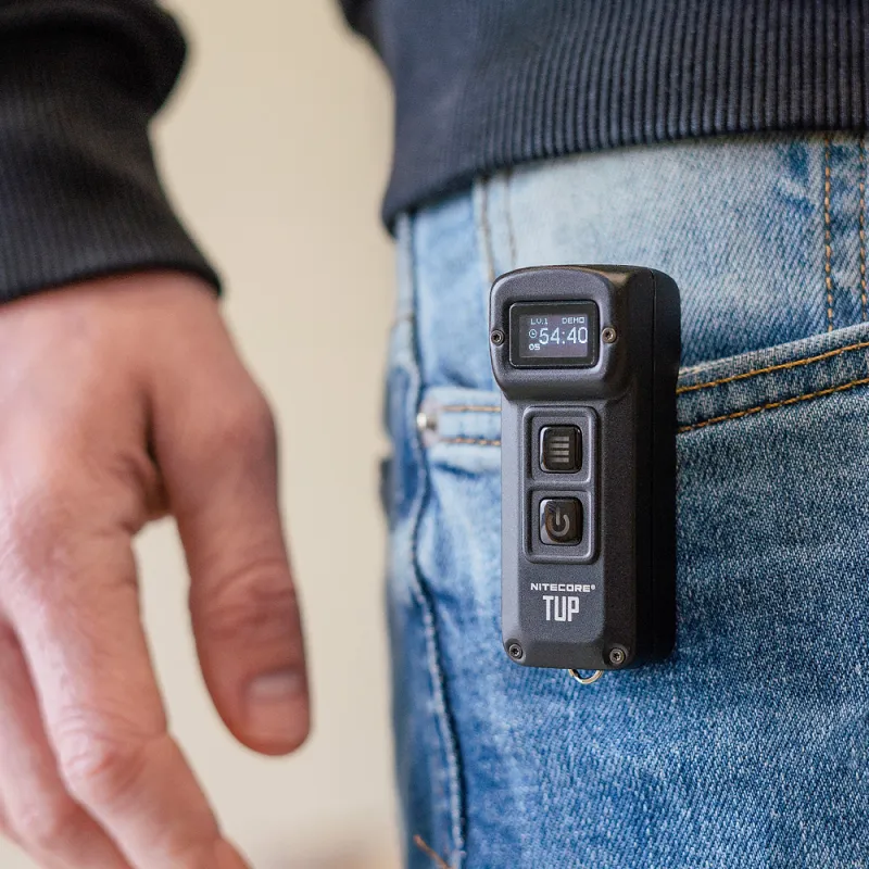 The Nitecore TUP keychain lamp is small in size and weighs only 54 grams. This little powerhouse produces up to 1000 lumens of bright light and has several modes. You charge the torch via micro USB.