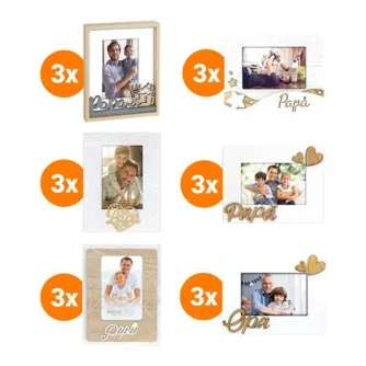 В этом пакете вы найдете не менее 18 фоторамок ZEP на тему отца. Вы получите 6 различных вариантов, по 3 штуки каждой рамки в комплекте. Это идеальный вариант для пополнения запасов вашего магазина или веб-магазина, и к нему прилагается дополнительная скидка, которую вы сможете увидеть после входа в систему.