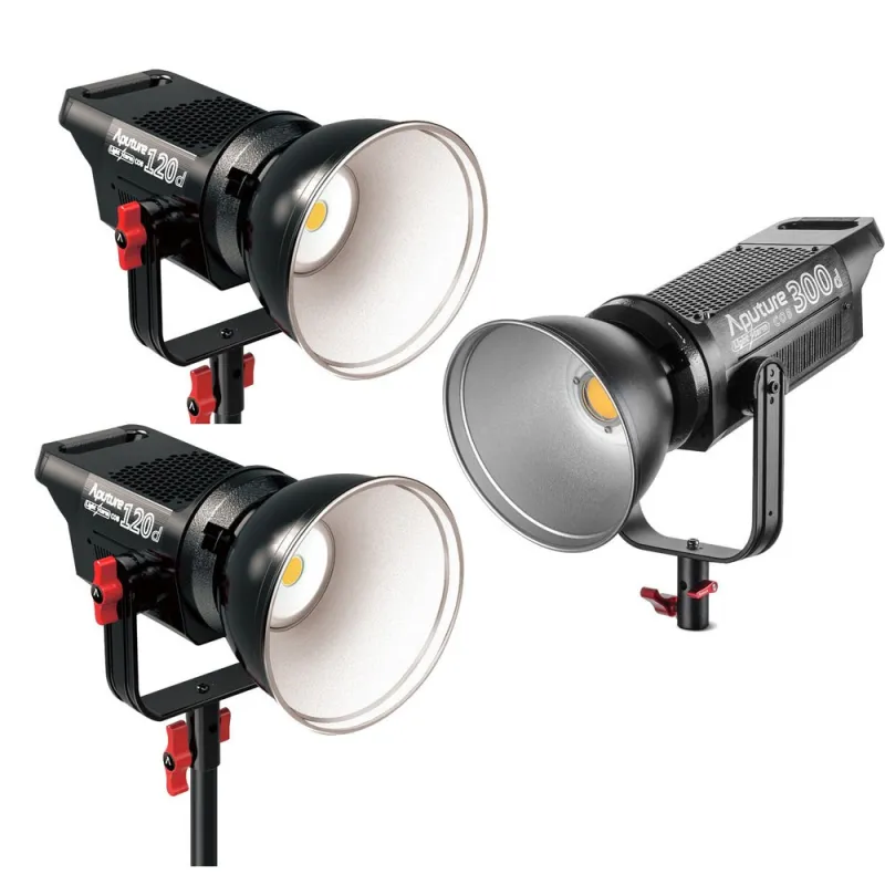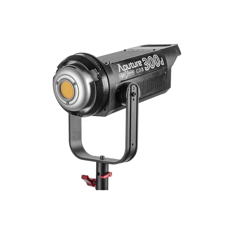 The Light Storm LS C300d LED Light from Aputure is a Chip on Board (COB) designed fixture with a 5500K color temperature that consumes only 300W of power while outputting 4451 fc of light with a standard reflector at a distance of 1.6'. In addition to power efficiency, this fixture also has a CRI rating of 95 and a TLCI rating of 96, indicating an accurate rendering of color. And the LS C300d can be seen but not heard which is ideal for sound sensitive environments. The intelligent cooling system employs temperature sensitive fans to regulate the heat. Even at maximum power the fan is undetectable by most people.
