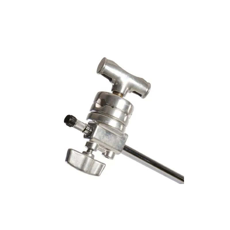 The included tripod is equipped with a 3/8 spigot adapter, which can be used alone as a stand for your studio flash unit. The boomarm of the StudioKing C-Stand is 120cm long with a spigot connection on both sides, one sides has a 1/4 male thread and the other side has a 3/8 male thread. The supplied clamps are suitable for tubes with a diameter of 5, 8, 12and 18 mm.