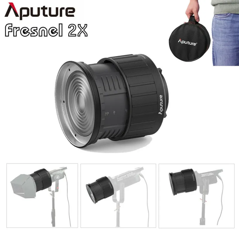 The Fresnel 2X is adaptable to any situation. With its Bowens Mount design, this fresnel can be attached to a myriad of lights. The 7” front ring accepts the Aputure Barndoors, meaning your light shaping options are endless. With the included carrying case, the Fresnel 2X can easily follow you, wherever your shoots may take you.