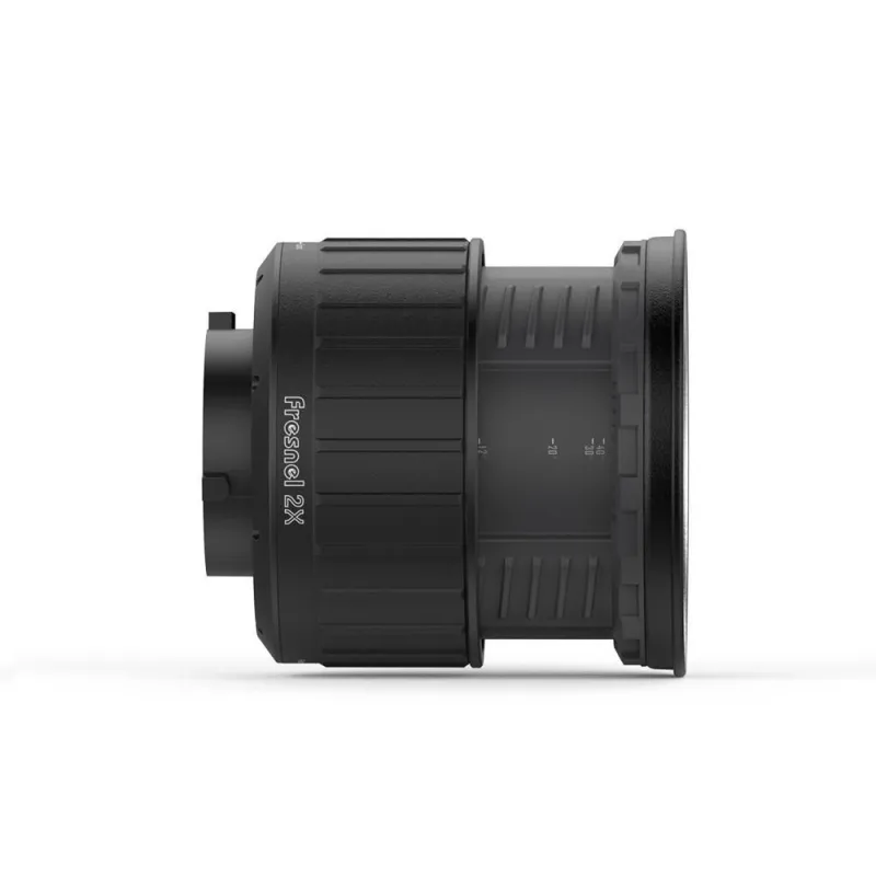 The Fresnel 2X features a dual lens design. The rear lens focuses and magnifies the beam onto the larger 6” front Fresnel lens, this achieves zero light waste. Our dual lens optical design makes the Fresnel 2X twice powerful as the original Aputure Fresnel, and makes the 120D II up to 14 times brighter, breathing new life into your lights.