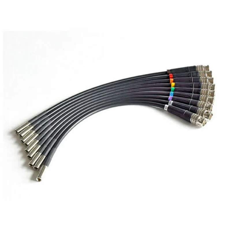 Set of 9 interconnect cables for Blackmagic Design DeckLink Quad cards. The cable set is made of high quality, flexible coaxial cable, DIN 1.0/2.3 and BNC M connectors from the Japanese manufacturer Canare.