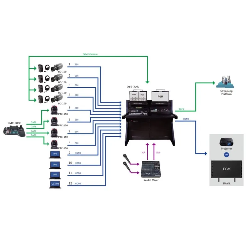 The beauty of multiple PTC-150 cameras is the ability to control all of them from a single control panel. Pair up to 4 cameras with the RMC-180 controller, and you can reduce your camera crew to just... you.