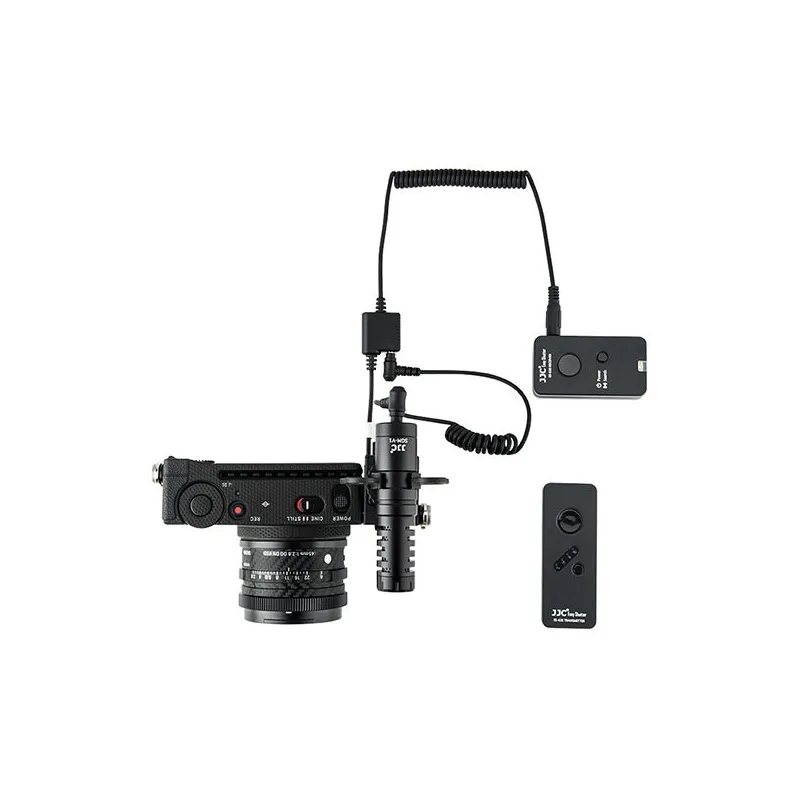 The JJC ES-628I3 Radio Frequency Wireless Remote Control is designed for the Sigma FP system camera. It is a replacement remote control for the Sigma CR-41. This set consists of a transmitter, receiver and connecting cable which allows you to remotely control your camera. This prevents unwanted camera shake and allows you to take pictures of difficult to approach subjects, such as wild animals, in an easy way. The receiver is powered by two AAA batteries and the transmitter by a CR2032 button cell battery.
