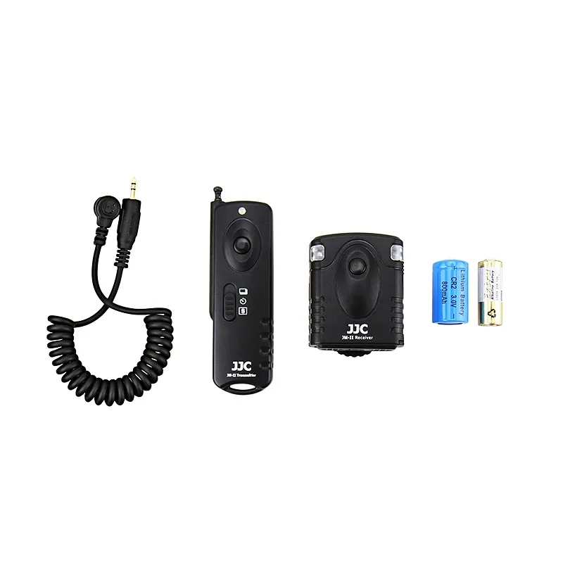 JJC Wireless Remote Control 50m JM-A II (Canon RS-80N3) JJC Wireless Remote Control 30m JM-A II - это комплект с приемником и передатчиком, который позволяет управлять камерой Canon без проводов. Система работает на частоте 433 МГц и имеет 16 различных доступных каналов. Вы можете управлять камерой на расстоянии до 30 метров, при этом передатчик и приемник не должны находиться в поле зрения друг друга. Передатчик может запускать затвор пятью различными способами: одиночный снимок, запись с пятисекундной задержкой, три непрерывных снимка, неограниченное количество непрерывных снимков и лампа накаливания. Это позволяет использовать комплект во многих ситуациях! Нажмите кнопку наполовину вниз, чтобы сфокусироваться на объекте, и нажмите кнопку до конца, чтобы сделать фотографии. Два светодиодных индикатора подтверждают предварительную фокусировку и экспозицию. Приемник JM-A II легко подключается к внешнему разъему вашей цифровой зеркальной камеры с помощью прилагаемого соединительного кабеля. Если у вас есть несколько приемников, можно даже позволить нескольким камерам делать снимки одновременно с помощью одного передатчика. Приемник имеет в нижней части соединение с внутренней резьбой 1/4".