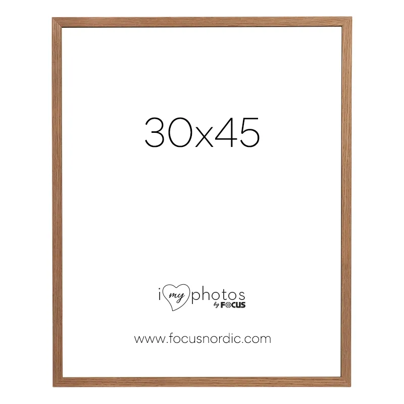 Oak colored frame with a classic style. The frame has a thin profile. The frame comes with real glass that highlights the best in your photos. Frame profile is 22mm deep and 13,5mm wide. The picture size of the frame is 30x45cm.