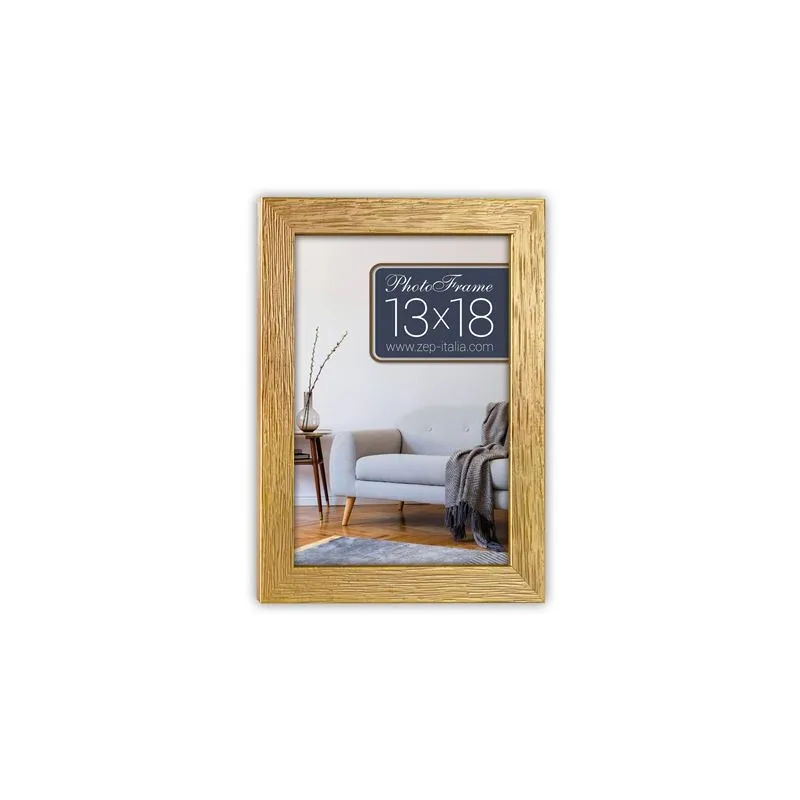 The Photo Frame V623G Lienz Gold 20x30 cm by Zep Italia is a single photo frame suitable for one 20x30 cm photo. The photo frame is characterized by its golden color with a wooden structure, which gives it an elegant yet warm look. The total dimensions, including the frame, are 21,8x31,8 cm.