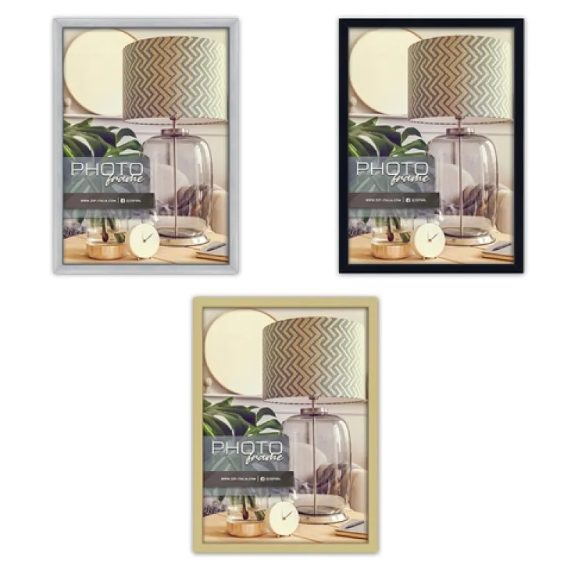 Aluminum Photo Frames Action Pack from Zep includes 36 photo frames from the John series, in various sizes. The photo frames are characterized by their silver, black and gold aluminum appearance and can now be ordered with extra discount.