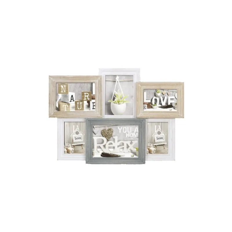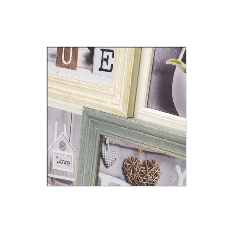 The TY1449 Vincennes from Zep Italia is a photo frame which is suitable for 6 photos. The following sizes can be placed in the frame, 3 times 10x15 cm, 2 times 13x18 cm and 1 time 15x20 cm. The photo frame features a Vintage look. The total dimensions, including the frame, are 57x41 cm. The photo frame is suitable for horizontal placement. You can hang the photo frame on the wall.