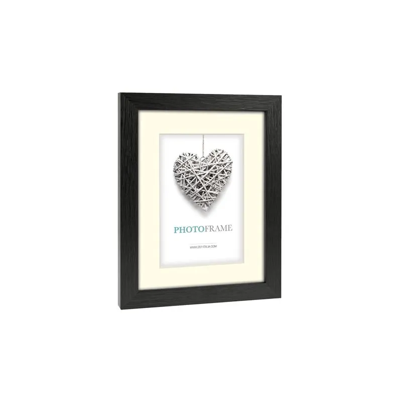 The V32485 from Zep Italia is an wooden photo frame which is suitable for 1 photo of 10x15 cm or 15x20 cm. The photo frame features a black frame. The total dimensions, including the frame, are 18x23 cm. The photo frame is suitable for vertical or horizontal placement. You can hang it on the wall or place it on a table.