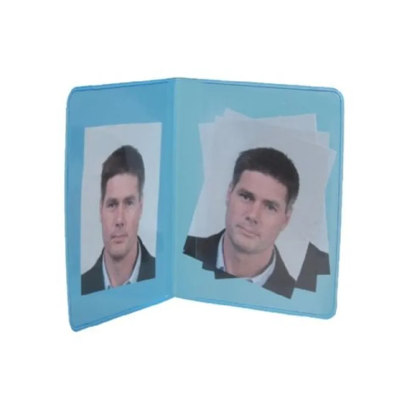 The colored Passport Photo Wallets are made of a strong PVC material and are finished with a glossy coating. The inside of the wallet consists of two compartments, where you can store one or more passport photos. The dimensions are 53 x 65mm (W x H) when folded. You will receive 250 passport photo wallets, divided proportionally in the colors blue, green, yellow and red.