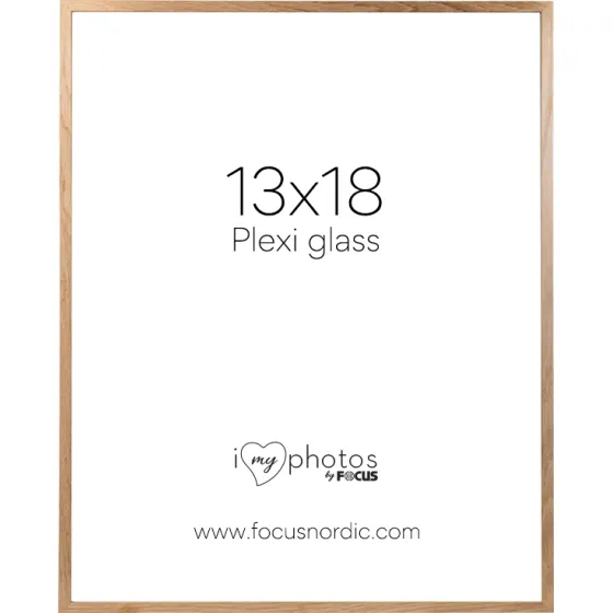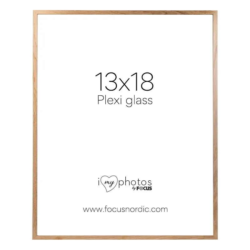 Oak colored frame with a classic style. The frame has a thin profile. The frame comes with plexiglass, perfect for children's rooms or environments where you want a shock resistant glass. Frame profile is 22mm deep and 13,5mm wide. The picture size of the frame is 13x18 cm.