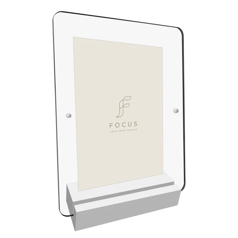 Легко разместите вашу любимую фотографию или художественный принт между акриловыми листами и вставьте в деревнную основу - без инструментов и сборки. Паз в массивном деревнном блоке надежно удерживает акрил, обеспечива стабильную установку без повреждени принта.