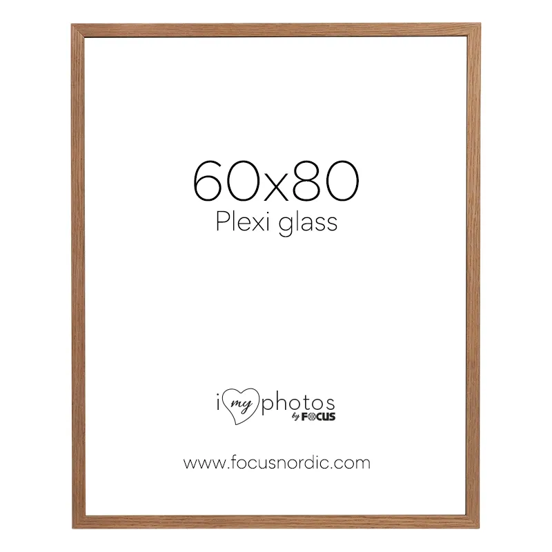 Oak colored frame with a classic style. The frame has a thin profile. The frame comes with plexiglass, perfect for children's rooms or environments where you want a shock resistant glass. Frame profile is 22mm deep and 13,5mm wide. The picture size of the frame is 60x80cm.
