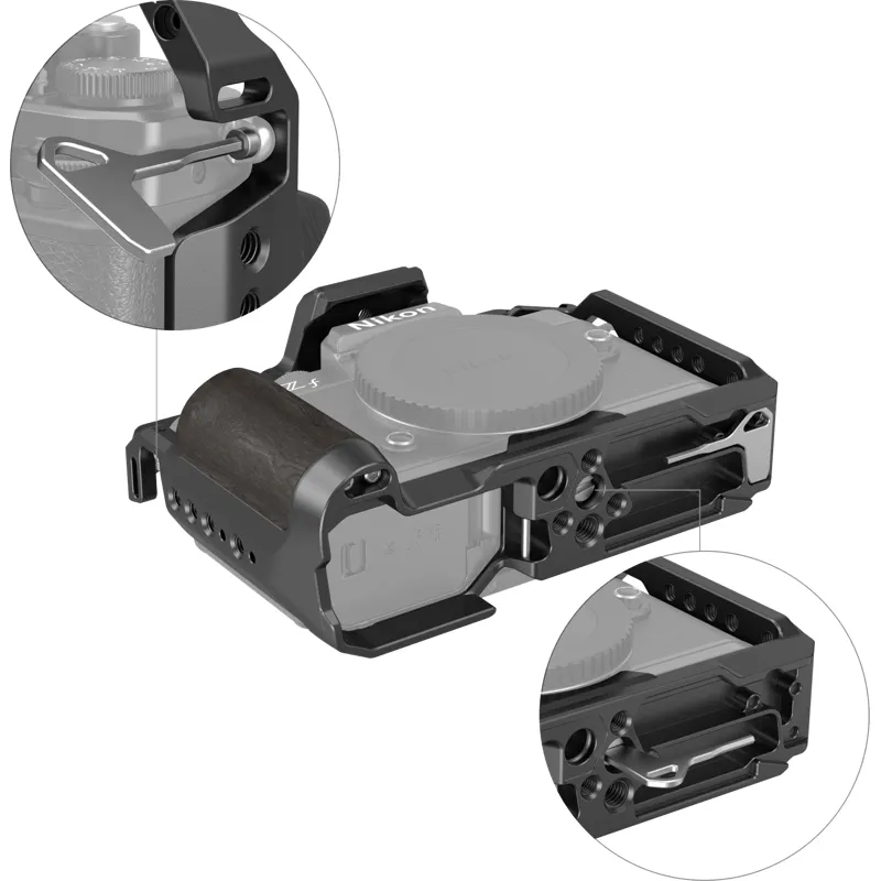 Besides, there are strap holes for SmallRig Hand Strap 3848 / 3926, Neck Strap 3485, QD mounts for Shoulder Strap 4118 and a bottom Arca Swiss quick-release plate for Arca-type tripods or DJI RS 2 / RSC 2 / RS 3 / RS 3 Pro gimbals for quick switch between gimbal, handheld and tripod modes.