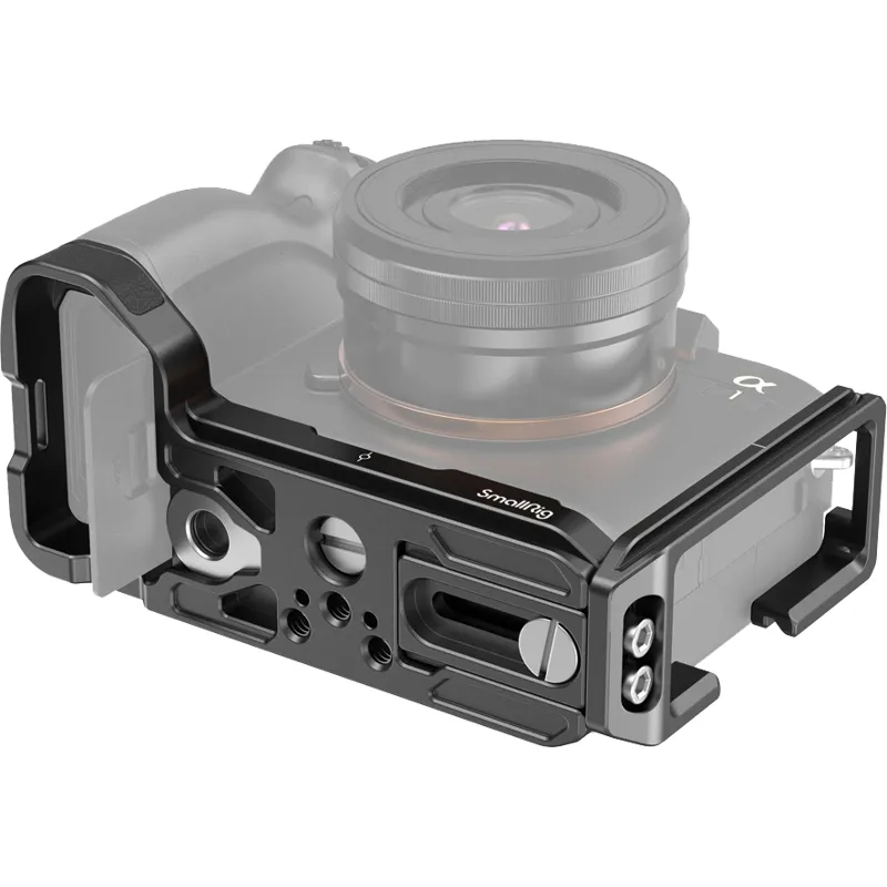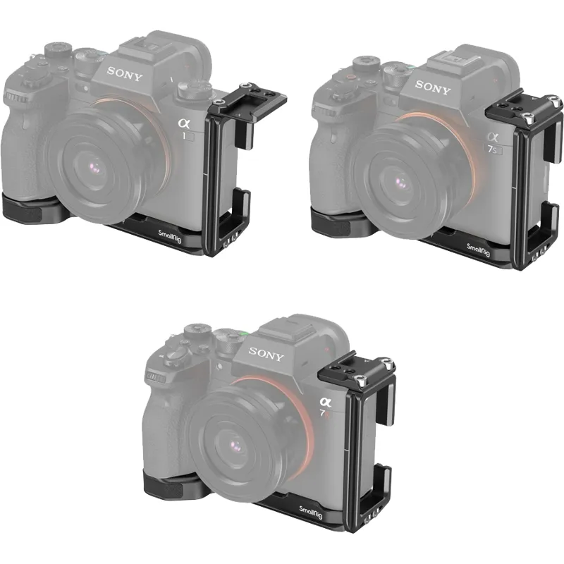 SmallRig L Bracket for Sony A1&A7S III&A7R IV&A9 II 3207 is specially designed for quick switch between vertical and horizontal shooting and for better grip experience. It locks the camera via a 1/4"-20 screw on the bottom and features rubber pads on the baseplate to prevent scratching and twisting. Both the baseplate and side plate are of Arca-Swiss standards with center marks. The side plate can be extended to the left if more room is needed for tethering or cable release, and can be forwarded to allow the utilization of flip screen.