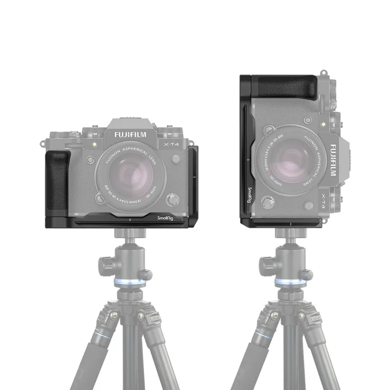 SmallRig L Bracket for FUJIFILM X-T4 Camera LCF2812 is modular designed with anti-twist flanges to keep the camera from twisting and provide a comfortable grip. Both the base plate and side plate are Arca-type compatible dovetails enable the camera to mount in a vertical or horizontal position. It secures to the bottom of the camera with a 1/4 screw and an anti-twist locating pin prevent twisting. The anti-slip silicone grip would make it easier to handhold the camera. Each axis features a sensor centering line to align the camera on a tripod head. The side plate features a 1/4"-20 threaded hole that allows for mounting a Magic Arm 2163 for accessories. The bottom features a 1/4" -20 and 3/8 "-16 thread enables mounting a tripod plate. A flat head screwdriver stores on the bottom to secure the camera screw.