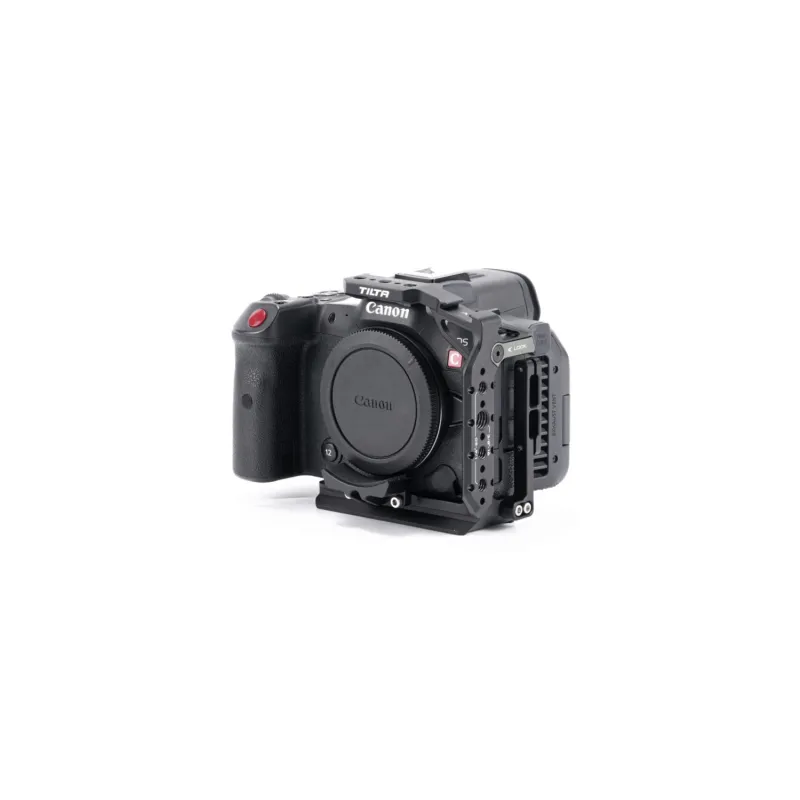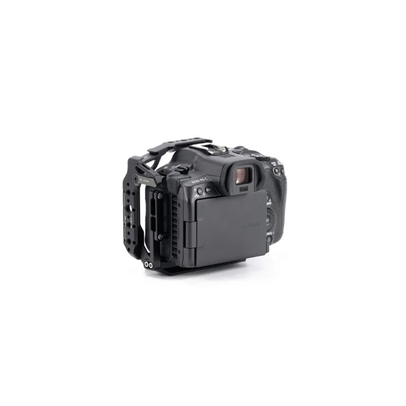 The Half Camera Cage for Canon R5C provides partial protection for your camera body and offers support for attaching various accessories via mounting points such as NATO Rail, a Cold Shoe Receiver, 1/4-20 and 3/8-16 threads with locating points.